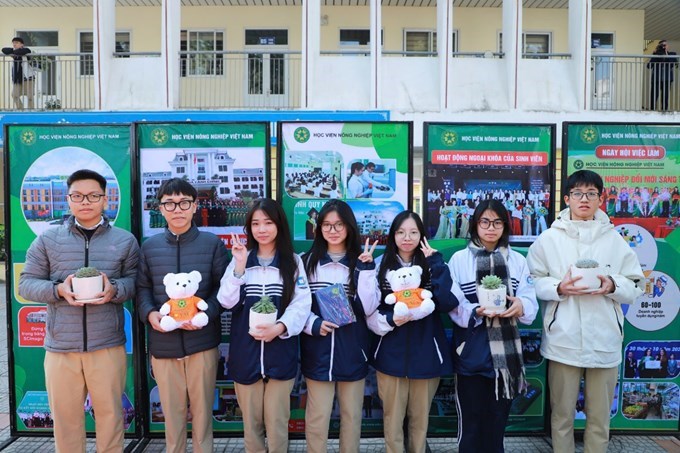 Tham gia Ngày hội tư vấn tuyển sinh - hướng nghiệp năm 2026, Học viện Nông nghiệp Việt Nam đã chuẩn bị chu đáo và tổ chức gian tư vấn với cách bố trí khoa học, tạo điểm nhấn thu hút đông đảo học sinh và phụ huynh tham quan, tìm hiểu. Gian tư vấn của Học viện gồm khu vực tư vấn, giải đáp thắc mắc cho phụ huynh, học sinh; khu trưng bày các sản phẩm khoa học công nghệ của Học viện. Đặc biệt, Học viện còn thiết kế những hashtag cầm tay với các câu nói trendy để các em check-in với background “xịn sò” trong khu vực tư vấn của Học viện.