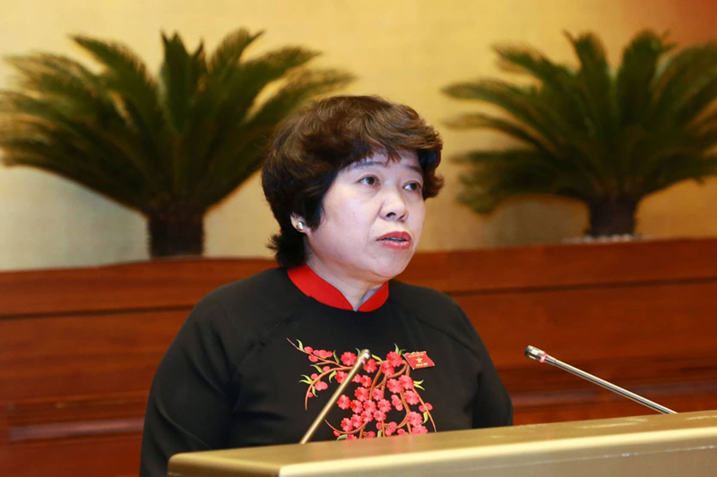 hủ nhiệm Ủy ban về các vấn đề xã hội của Quốc hội Nguyễn Thúy Anh trình bày báo cáo thẩm tra. Ảnh vov.vn