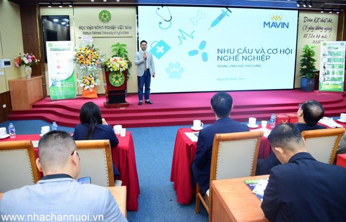 Tại hội thảo, BSTY Nguyễn Đức Duy, đại diện Tập đoàn Mavin, với tham luận “Nhu cầu và cơ hội nghề nghiệp trong lĩnh vực thú cưng” cho rằng, sự thay đổi rõ nét trong hành vi của người nuôi đang tạo động lực mạnh mẽ cho sự phát triển của ngành thú cưng. Theo ông, thú cưng ngày nay không còn đơn thuần là vật nuôi mà đã trở thành thành viên trong nhiều gia đình, kéo theo nhu cầu ngày càng cao đối với dinh dưỡng, chăm sóc và phòng bệnh theo hướng chủ động. Thực tiễn hoạt động của các phòng khám, bệnh viện thú cưng cho thấy nhiều bệnh lý phổ biến ở chó, mèo như béo phì, rối loạn tiêu hóa, bệnh da có mối liên hệ chặt chẽ với chế độ dinh dưỡng và chăm sóc hằng ngày, trong khi tư duy “chỉ điều trị khi đã phát bệnh” vẫn còn khá phổ biến. Trước bối cảnh đó, chăm sóc chủ động và phòng bệnh từ gốc, đặc biệt thông qua dinh dưỡng khoa học, được xem là xu hướng tất yếu, đồng thời mở rộng vai trò của bác sĩ thú y và người làm chuyên môn từ điều trị sang tư vấn, đồng hành cùng chủ nuôi trong suốt vòng đời của thú cưng.