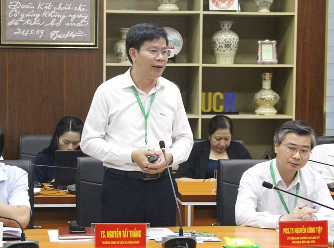 | TS Nguyễn Tất Thắng - Trưởng khoa Du lịch và Ngoại ngữ (Học viện Nông nghiệp Việt Nam) chia sẻ tại buổi làm việc. |